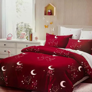 4 részes hold mintás ágyneműhuzat szett - bordó
