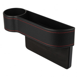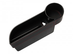 A vezető bal oldalára, az ülés és a sebességváltó közé szerelhető, réselt autós tárolórekesz rekeszekkel és pohártartóval. A kivételesen szép fekete kárpit gondoskodik arról, hogy a termék minden autó belsejébe illeszkedjen, a piros cérna pedig az egyedi és modern dizájnt hangsúlyozza. Az elülső részen található egy italtartó (bögre, pohár, doboz vagy üveg).