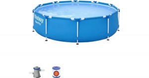 Az acélkeret a keretösszekötő rendszernek köszönhetően szerszám nélkül könnyen felállítható. Kövesse a kézikönyvet, és a medence 20 percen belül készen áll. A PVC bélés rendkívül erős és ütőképes. Ha valami elromlik, erős javítási matrica található. A fürdő leeresztő szeleppel és 1,2 m3/h teljesítményű szűrőszivattyúval van felszerelve. 1 db szűrőpatront kap (I. típusú).