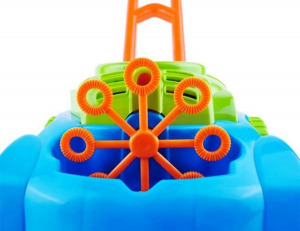 Szuper kültéri játék fiúknak és lányoknak egyaránt. Szaladjatok a kertbe apával füvet nyírni, miközben a színpompás buborékok röpködnek a kertben mindenfelé a játék fűnyírótokból. Kapjátok el a levegőben szálló szappanbuborékokat! Örök kedvenc a gyerekek körében a szappanbuborék, de sok felnőtt is imádja őket, hiszen olyan megnyugtató elmerengeni a buborékokat követve a szemünkkel. A játék első részében egy tartály helyezkedik el, amelybe a szappanbuborék készítéséhez való folyadékot tölthetsz. A tartályban forgó 8 kis fúvókán keresztül rengeteg buborékot fúj ez a kis játék fűnyíró a levegőbe. 3db AA ceruzaelemmel működik, amit a csomagolás nem tartalmaz. Ez a mesésen színes fűnyíró végtelen szórakoztató és serkenti a kreativitást, fejleszti a kézi készségeket.