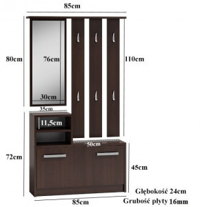 - Az előszobafal magassága összesen kb. 155 cm, szélessége 85 cm, mélysége 24 cm. Dizájnjában és méreteiben is tökéletesen passzolhat az előszobádba.