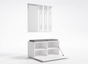 A kétrészes előszobafal biztosítja a helyet cipőidnek és kabátjaidnak, emellett hangsúlyozza a modern, minimalista dizájnt.