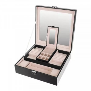 A doboz első szintjén található egy kivehető tároló, amely egy kisebb tükörrel és pattintható zárral ellátott. Ez 6 kisebb és 1 nagyméretű rekesszel rendelkezik. Tökéletes lesz arra, hogy több nyakláncot, fülbevalót, gyűrűt vagy karkötőt vigyen magával egy utazásra. Könnyen elfér bármelyik kézi- vagy kozmetikai táskában, és lehetővé teszi, hogy mindig magánál tartsa.