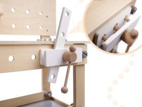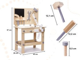 Ez a fa munkapad fiúknak és lányoknak egyaránt ideális, akik szívesen játszanak tapasztalt barkácsolókat! A fa csavarok becsavarása, a csavarkulccsal és más szerszámokkal való kísérletezés érdekes és szórakoztató módon fejleszti a gyerekek motoros készségeit. Emellett a játék ösztönzi a logikus gondolkodást és serkenti a kreativitást.