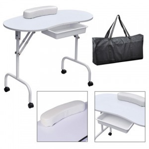 Hordozható manikűr asztalunk a legjobb választás szalonokba, vagy otthoni használatra is. Különösen praktikus ha vendégeid a saját otthonukban kívánnak szépülni, hiszen hordozható. Lábai behajthatóak, hordtáskájában bárhová magaddal viheted és tárolása is helytakarékos. A manikűr asztal alján egy kihúzható, mély fiók található, melyben minden szükséges kelléket tárolni tudsz. Fékezhető kerekeinek köszönhetően egyszerűen mozgathatod, megemelned sem kell. Szivacsos kéztartója kényelmes és borítása gyorsan, egyszerűen tisztítható, akárcsak az asztal maga.