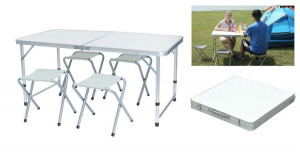 Kemping szettünk egy összecsukható és hordozható asztalból és 4 székből áll. Használhatod kirándulások, kempingezések alkalmával, de akár otthon a teraszon egy összejövetel alkalmával is.