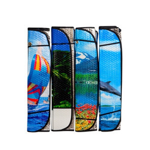 Napárnyékoló első szélvédőre. Többféle tájképes mintával, tapadókoronggal rögzíthető.