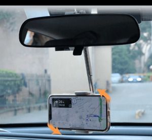 Ülésre, visszapillantóra rögzíthető, teleszkópos mobiltelefon tartó - fekete