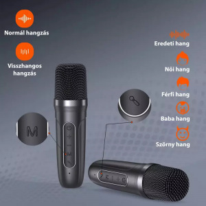 De ez még nem minden! A hangszóróhoz jár egy vezeték nélküli mikrofon is, amellyel karaoke bajnokká válhat, vagy akár beszédeket is tarthat a beállítható természetes-, női-, férfi-, baba és szörny hangeffektekkel. A modern, menő és stílusos design pedig, garantáltan felkelti a figyelmet, bárhol is használja.