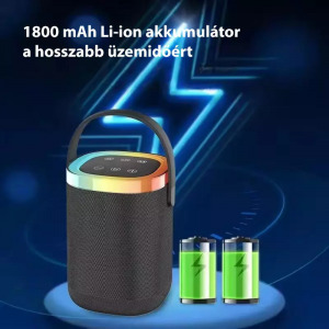 A Bluetooth kapcsolatnak, az USB portnak, az SD kártya slotnak és az AUX csatlakozásnak köszönhetően bármilyen eszközről hallgathatja kedvenc zenéit. A Bluetooth hangszóró 1800 mAh-s beépített akkumulátorral rendelkezik, amely akár 6 óra üzemidőt biztosít. Kültéri használatra is ideális, a készülék mérsékelten vízálló, így nem kell aggódnia az esőcseppek miatt sem. Kompakt méretének és hordozófülének köszönhetően bárhova könnyedén magával viheti és már indulhat is a party!