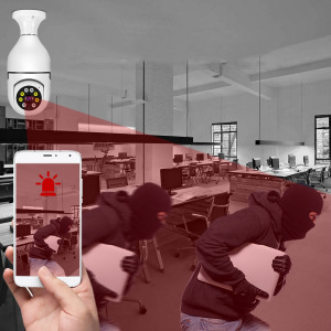 A PTZ biztonsági kamera minden funkciója mellett ez a kamera olyan egyszerűen beállítható, mint egy izzócsere, csak csatlakoztasd a mennyezeti süllyesztett lámpa, állólámpa, asztali lámpa stb. izzójának foglalataihoz. Infravörös és fehér LED-ekkel van felszerelve. Sötét környezetben készenléti üzemmódban bekapcsolt IR-vel fekete-fehér látást biztosít. Amikor mozgást észlel, a fehér LED-ek világítanak, hogy teljes színlátást biztosítsanak. További részletekért tekintse meg az alábbi jellemzőket és specifikációkat.