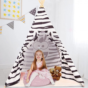 Egyedi design: a játék teepee szett egy aranyos rajzfilm zebra designban készült, amelynek köszönhetően a gyerekek úgy érezhetik, mintha egy tündérmesében lennének. A világos színek még inkább felkeltik a gyerekek figyelmét, ösztönzik őket az önállóságra, miközben megőrzik ártatlanságukat. Nagyon alkalmas fotózásra is, és nyomot hagy a gyermek növekedésében.